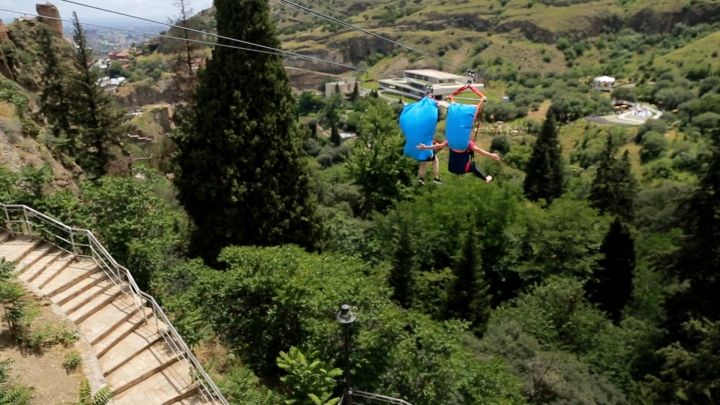 Аттракцион зиплайн начал работу в ботаническом саду Тбилиси. ФОТО