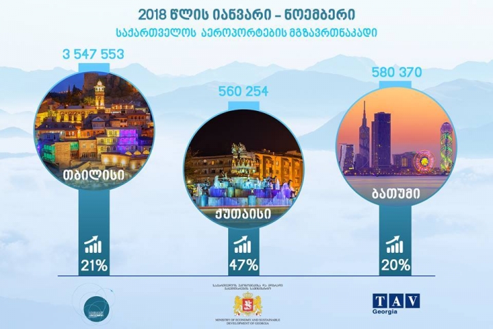 2018 წლის 11 თვის მონაცემებით საქართველოს აეროპორტებში მგზავრთნაკადი 23 %-ით გაიზარდა