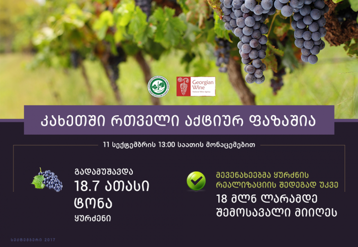 ყურძნის რეალიზაციიდან კახელმა ფერმერებმა 18 მლნ ლარი მიიღეს