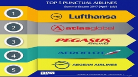 თბილისის საერთაშორისო აეროპორტმა ხუთი ყველაზე პუნქტუალური ავიაკომპანია დაასახელა.