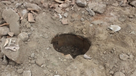 მცხეთის ძველი კინოთეატრის შენობის ბაზაზე მშენებარე არქეოლოგიური მუზეუმის სამშენებლო ქვაბულის...