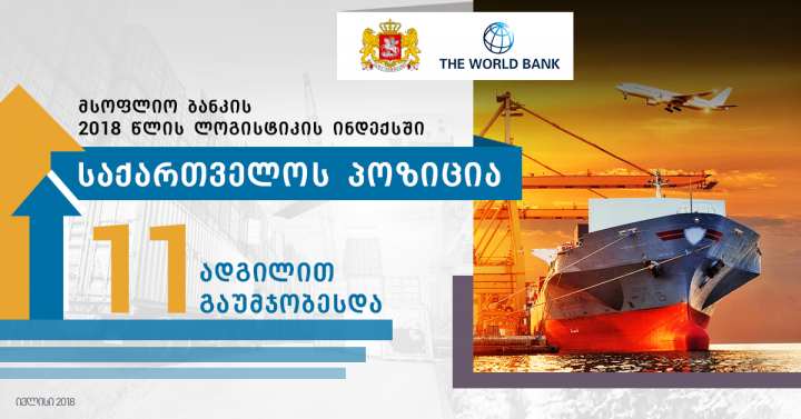 მსოფლიო ბანკის 2018 წლის ლოგისტიკის ინდექსში საქართველოს პოზიცია 11 ადგილით გაუმჯობესდა.