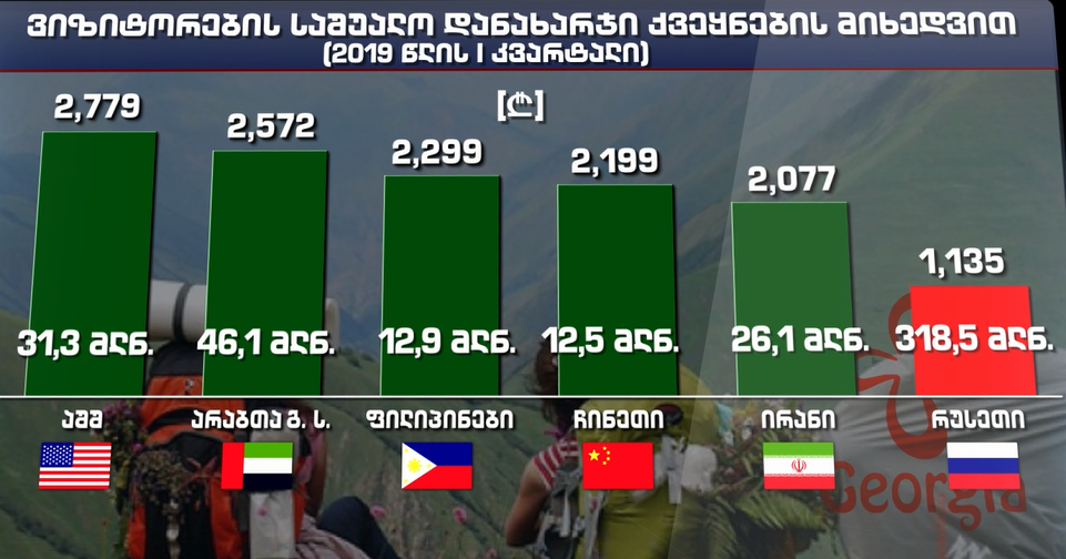 ამ წლების განმავლობაში იზრდებოდა რუსი ტურისტების/ვიზიტორების მიერ საქართველოში დახარჯული თანხის მოცულობა. მაგ.: 2018 წელს რუსების მთლიანმა ტურისტულმა ხარჯმა 1.9 მლრდ ლარი შეადგინა, ხოლო 2019 წლის პირველ კვარტალში – 318.5 მლნ ლარი, თუმცა უნდა აღინიშნოს ისიც, რუსი ტურისტები ვერც 2018 წელს და ვერც 2019 წლის პირველ კვარტალში ვერ მოხვდნენ იმ TOP-10 ქვეყანას შორის, რომლის მოქალაქეებიც საქართველოში ყველაზე მეტ ვალუტას ხარჯავენ. უფრო მეტიც, თუ შარშან რუსეთიდან ერთმა ვიზიტორმა ერთ ვიზიტზე 1326 ლარი დახარჯა, წელს პირველ კვარტალში უფრო ნაკლები – 1135 ლარი დახარჯა, მაშინ როდესაც ამერიკელი, ჩინელი, ფრანგი თუ ირანელი ტურისტი 2000 ლარს და მეტს ტოვებს ქვეყანაში.