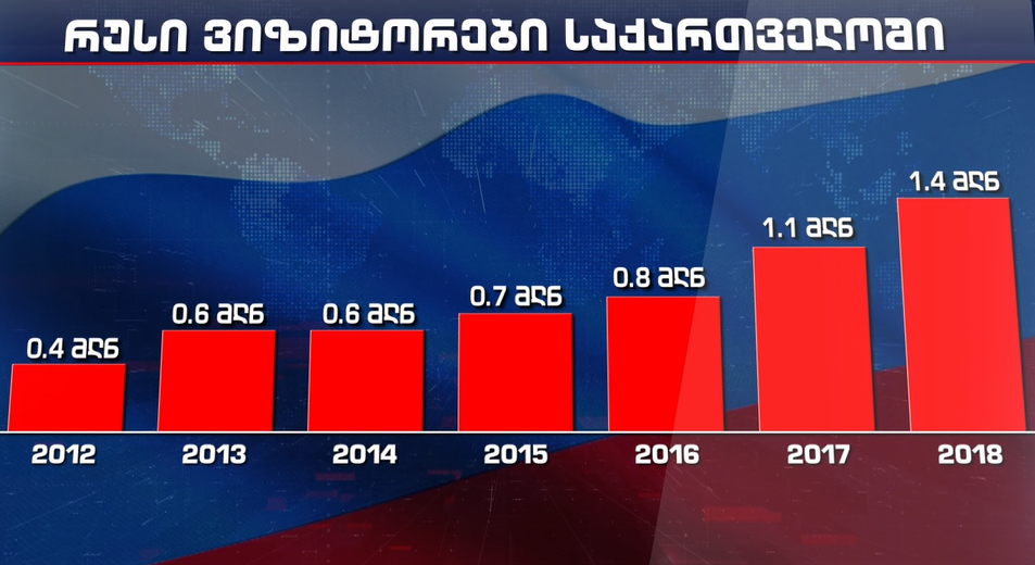 ცნობისთვის: 2013 წლიდან მოყოლებული რუსეთიდან ვიზიტორების რაოდენობა მუდმივად იზრდებოდა და გასულ წელს 1.4 მლნ ვიზიტორს მიაღწია.