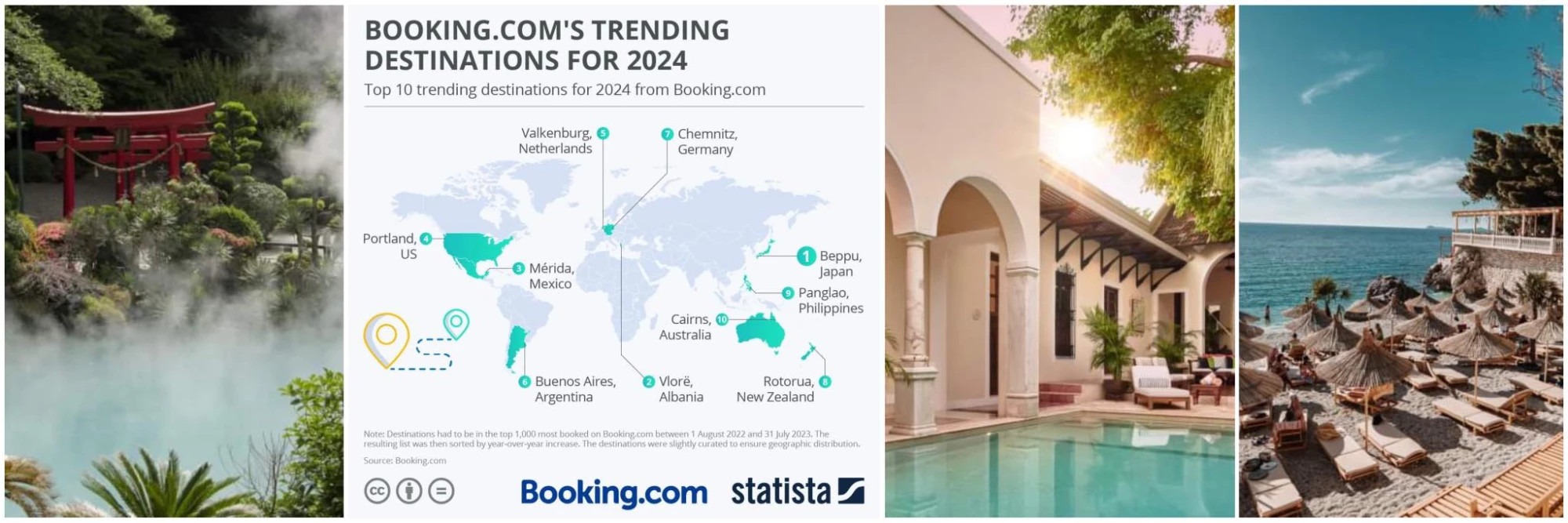 Booking.com-მა უკვე დაასახელა 2024 წლის ყველაზე პოპულარული ტურისტული მიმართულებები. მონაცემები პლატფორმაზე დაფიქსირებულ ჯავშნებს ეყრდნობა.
