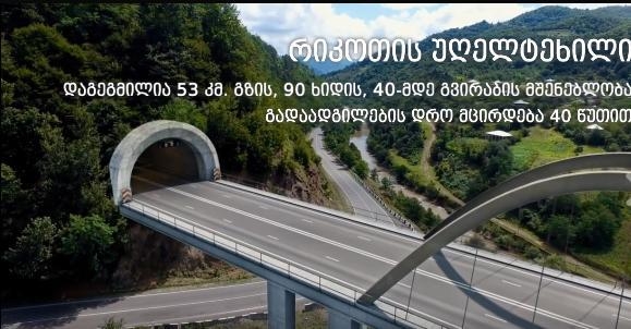 შეგახსენებთ, რომ რიკოთის უღელტეხილზე, ხევი-უბისა-შორაპანი-არგვეთის მონაკვეთის 42 კმ სიგრძის 4-ზოლიანი გზის მშენებლობის პროექტირება იწყება, რომელიც 90-მდე ხიდსა და 40-მდე გვირაბს მოიცავს.
