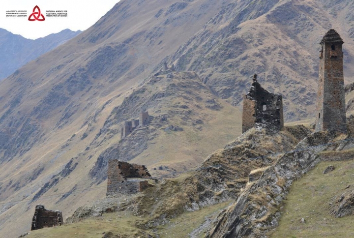 სოფლის დასავლეთით, 1,5 კმ-ზე, გვიანდელი შუა საუკუნეების ხუთი კოშკია შემორჩენილი. ყველაზე უკეთ ჩრდილოეთით მდგარი ხუთსართულიანი კოშკია შემორჩენილი. ნაგებია ფიქალით. წყობა მშრალია. კოშკის პირველი და ზედა სართული შეკრული კამარითაა გადახურული. დანარჩენებს კი, ხის კოჭებზე დაყრდნობილი ბრტყელი გადახურვა ჰქონია.