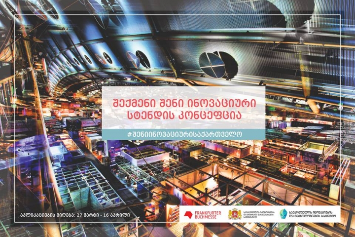საქართველოს ინოვაციების და ტექნოლოგიების სააგენტო აცხადებს კონკურსს -„შენი ინოვაციური საქართველოს“ სტენდის კონცეფციაზე, რომელიც 2018 წლის ფრანკფურტის წიგნის ბაზრობაზე განთავსდება.
