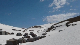 Первый снег выпал на горном курорте Гомис мта в Гурии, на западе Грузии.