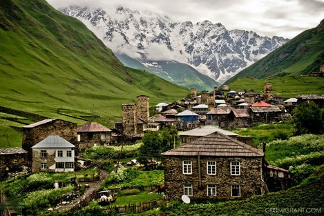 Общину Ушгу́ли ты найдешь в Местийском районе Грузии. Там всего четыре села: Чвибиани, Чажаши, Жибиани и Муркмели. Все они выросли на южном склоне высоченной горы Шхары. Несмотря на несколько заброшенный (но чудесный) вид, жизнь здесь идет своим полноценным чередом: население в двести душ, школа. Обитают в общине сваны — народность, у которой есть свой язык, отличный от грузинского, поэтому здешний горный регион зовут Сванетией. Люди они мирные, гостеприимные, цивилизованные, и вид твоего велосипеда их не распугает.