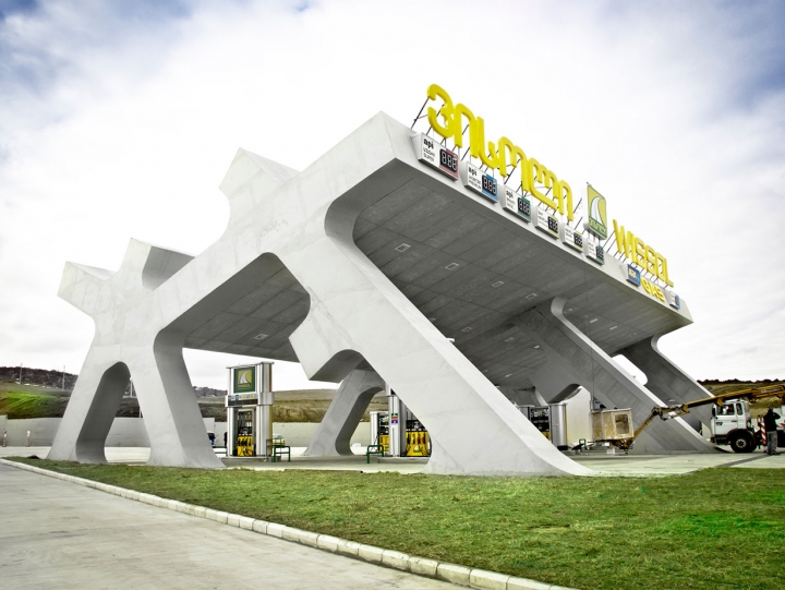 «Возможно, это один из наиболее впечатляющих дизайнов автозаправочных станций. Компания Khmaladze Architects сумела создать сбалансированную