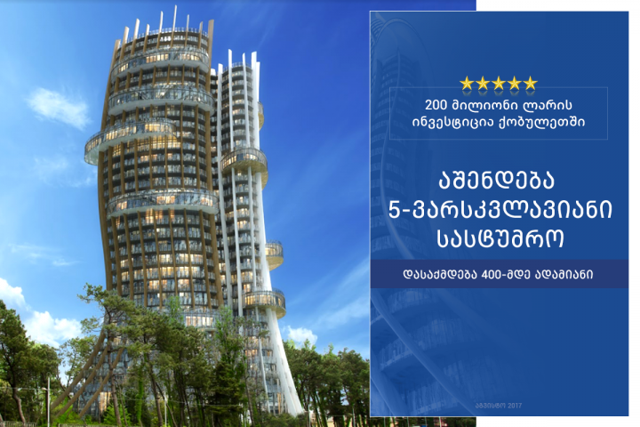 ქობულეთში, აღმაშენებლის ქუჩაზე 5-ვარსკვლავიანი სასტუმრო კომპლექსის მშენებლობა დაიწყო