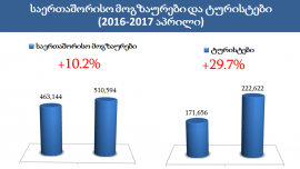 2017 წლის აპრილის თვის მონაცემებით საქართველოს 510,594 საერთაშორისო მოგზაური ეწვია, რაც 47,450-ით მეტია წინა...