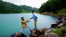 A Facebook page of Georgian hitchhikers named ავტოსტოპერები / Hitchhiker has published a lovely and heartwarming photo showing a proposal ceremony near the Blue Lake...