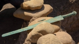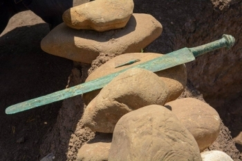 The bronze dagger found in the grave of an ancient military commander was dated back to the 13th Century BC. Photo from press office of the Ministry of Culture and Monument Protection of Georgia.