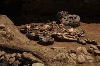 Work on the site has resulted in discovery of human remains along with various artefacts. Photo from press office of the Ministry of Culture and Monument Protection of Georgia.