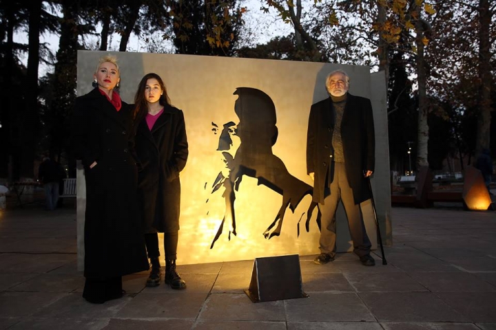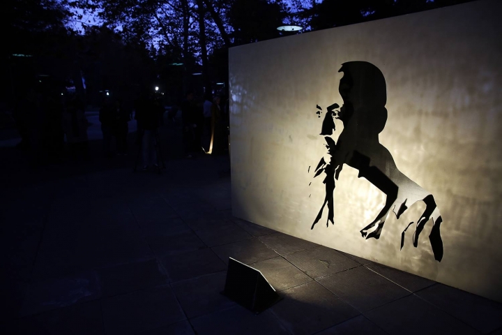 The monument features Charkviani based on photographs and a video still featuring the late artist. Photo from the Tbilisi City Hall.