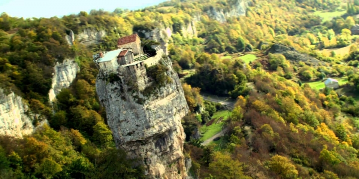 Georgia doesn’t only have unique places in the ground or in mountains, but also in the air. Take the Katskhi Pillar for example, a 40 meter high limestone monolith that is also known as “the Pillar of Life”. Around the 4th century this rock became a place of seclusion for the ‘Stylites’, a religious group who had a “slight” obsession with sitting on top of narrow pillars to come closer to God. How they got up on the Katskhi Pillar and were able to build a church on top of there is still a big mystery! It was only in 1945 that the first researchers were able to climb it. Oh, and the most extraordinary thing: a monk has been living on top of that remote pillar for 20 years!