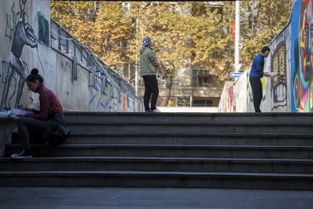A group of young artists were invited to paint the walls of the Heroes Square underpass. Photo: Nino Alavidze/Agenda.ge.