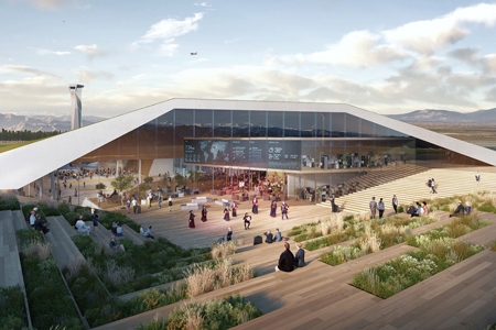 Like the existing terminal, the extension will be fronted by full-height glazing, creating a light-filled interior with views of the Caucasus Mountains.