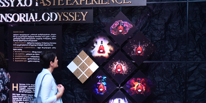 Artwork showcased on exhibition in Tbilisi is Rocko Iremashvili’s „Equilibrium“. It’s inspired by Georgian artist’s personal odyssey. The installation is a tribute to his adventure in Cognac and Hennessy X.O’s sensorial chapter – The Infinite Echo.