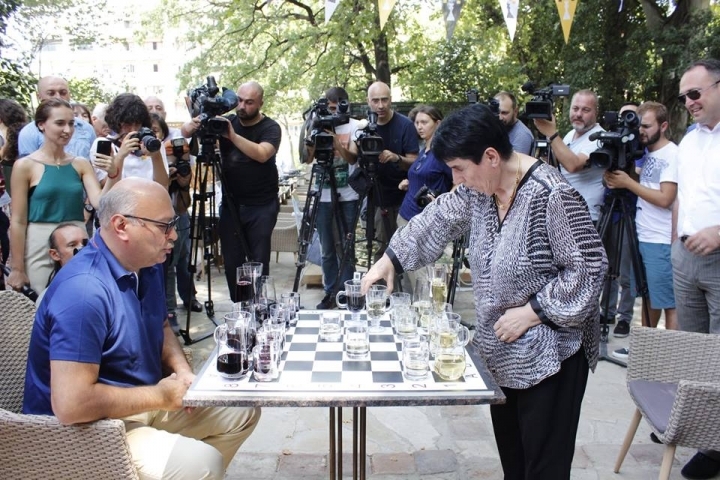 The event was a synthesis of chess and wine, which proved to be very interesting both for the participants and attending audience. A game between Nona Gaprindashvili and Zurab Azmaiparashvili conducted with wine glasses drew a lot of attention.