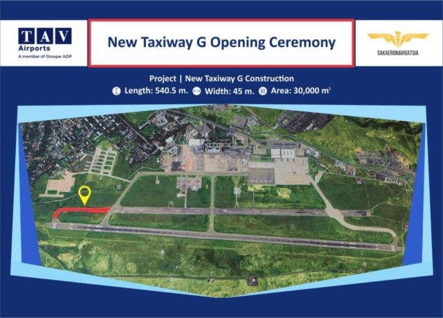 On May 5 the new taxiway G (Golf) of Tbilisi international airport opened officially. The ceremony dedicated to this event was attended by Deputy Minister of Economy and Sustainable Development of Georgia, Sakaeronavigatsia Ltd. Director, Representatives of Aviation Authorities and TAV Georgia Management.