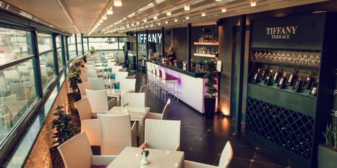 River Side Hotel has two incredible restaurants: Tiffany Bar and Tiffany Rooftop Terrace. In December 2014 we opened Tiffany Bar on the ground floor of River Side. We wanted to create different and elegant ambience for our guests which would perfectly mix with the hotel’s architecture and design, although be totally different and simply perfect. And we did it. Tiffany Bar offers a chic, stylish look and feel. With beautiful opulent pieces of furniture and a menu that includes creative cocktails and culinary wonders masterfully created by our Chef. Food and drinks are served throughout the day, starting with Continental breakfast in the morning and continuing with a full menu of lunch, snack and dinner option into the evening, accompanied by live music almost every day. Tiffany Bar also became popular with its desserts: Freshly made waffles, crepes, cakes, ice-creams, etc. According to several Georgian websites, Tiffany Bar was ranked #1 Romantic café in Tbilisi for 2016.