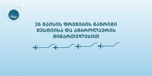 The additional connection on the Natakhtari-Mestia route will be performed at 13:30pm on May 26. The return flight is scheduled at 15:15pm. The Natakhtari-Ambrolauri connection will see an additional 16:30pm flight, with the return travel scheduled for 17:45pm on the date.