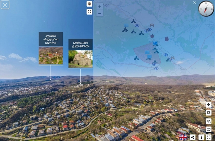 "A virtual tourist map of the district was created, which combines cultural heritage monuments, tourist facilities, cellars, various destinations, etc. Through the project, anyone can see the important destinations of the city or village from the air points in the online tour, accurately determine their location, access road and values. Virtual travelers can visit any church or cellar, go inside, get information about them and enjoy the cultural heritage of Kakheti and various locations.
