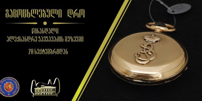 Golden pocket watch was auctioned in January of 2018 in USA. Tsinandali Museum with the help of Silk Road Group bought the piece. Former owner of the watch was the descendant of Alexander Chavchavadze, the US resident David Chavchavadze. He in turn received this time piece from his father Pavel Chavchavadze, who carried it since 1918, when he emigrated from Georgia. Pocket watch counted minutes in emigration first with Pavel and then with David till it returned in Georgia in 2018, exactly 100 years later.