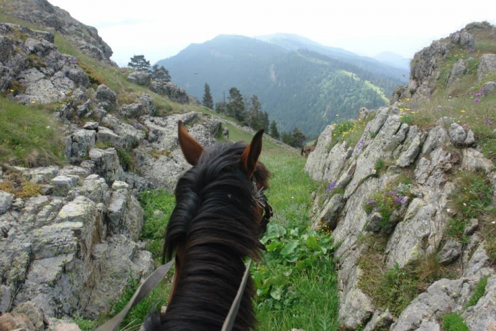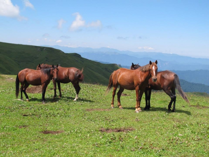 The trail goes along subalpine meadows and runs down the Colchic sub-tropical forest zone during the second half of the day. The trip ends at the Sakhvlari tourist shelter (1,025 m above sea level).