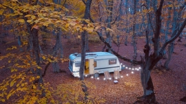 საბადურის ტყეში ახალი კონცეფციის დასასვენებელი ადგილი, კეთილმოწყობილი ტრაილერი, რომელიც...