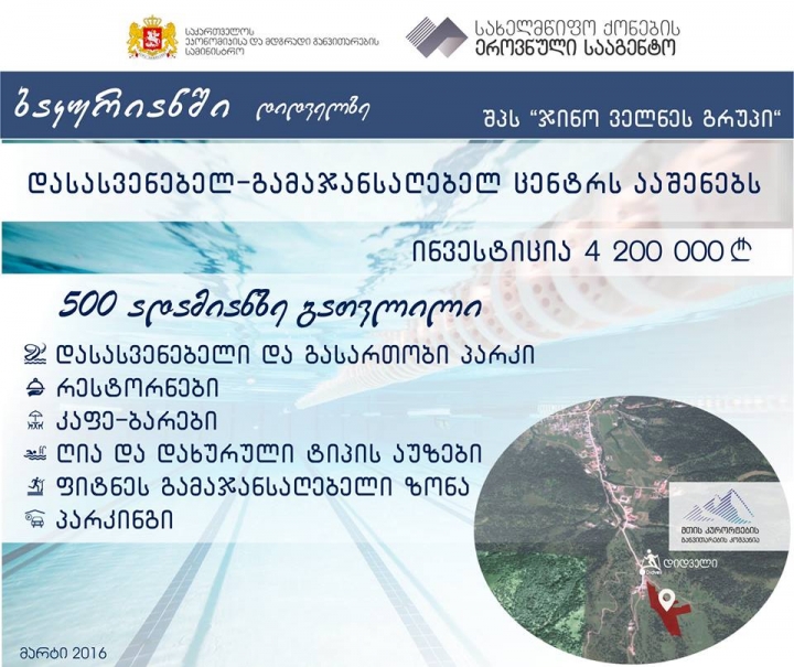 შპს „ჯინო ველნეს გრუპი“ დაბა ბაკურიანში დასასვენებელ-გამაჯანსაღებელი ცენტრის ასაშენებლად 4 200 000 ლარის ინვესტირებას განახორციელებს.