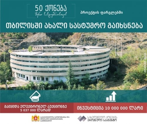 შეგახსენებთ, რომ აღნიშნული პროექტის ფარგლებში სსიპ „სახელმწიფო ქონების ეროვნულმა სააგენტომ" ქალაქ თბილისში, დავით აღმაშენებლის გამზ. N44-ში მდებარე უძრავი ქონება 5 750 001 ლარად გაყიდა. უძრავ ქონებაზე თანამედროვე სტანდარტების შესაბამისი მინიმუმ 30 ნომრიანი სასტუმრო კომპლექსი მოეწყობა და 5 300 000 ლარის ინვესტიცია განხორციელდება. სასტუმროში 30 ადამიანი დასაქმდება.