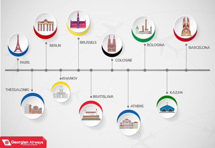 ავიაკომპანია Georgian Airways-ი 11 ახალი მიმართულებით იწყებს ფრენას. პირდაპირ ფრენებს კომპანია 25 მარტიდან შეასრულებს.