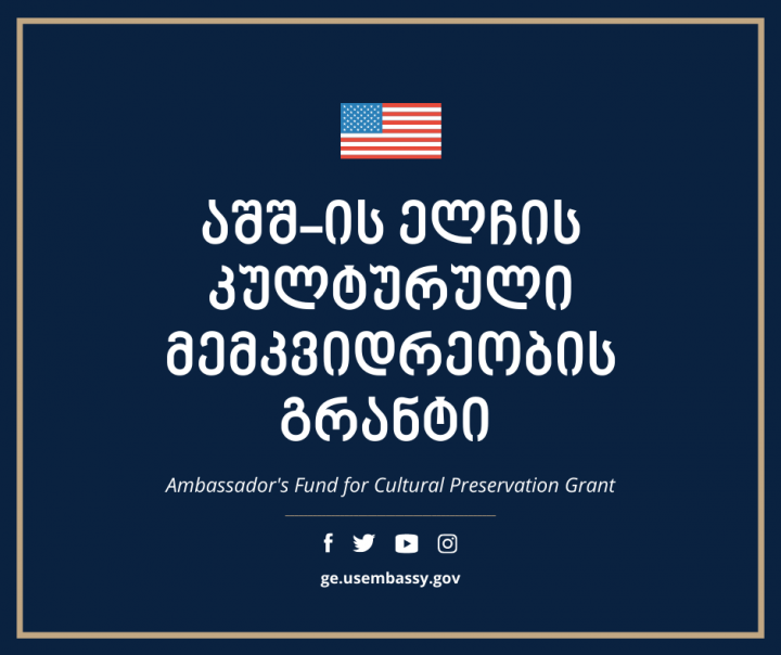 ამერიკის შეერთებული შტატების საელჩო საქართველოში აცხადებს საპროექტო განაცხადის აბსტრაქტების მიღებას აშშ-ის ელჩის კულტურული მემკვიდრეობის დაცვის ფონდის (AFCP) 2021 წლის კონკურსში. საელჩოს ინფორმაციით, საკონკურსო განაცხადების შერჩევა მოხდება კულტურული მემკვიდრეობის დაცვის 10 000$-დან 500 000$-მდე ღირებულების პროექტებზე.