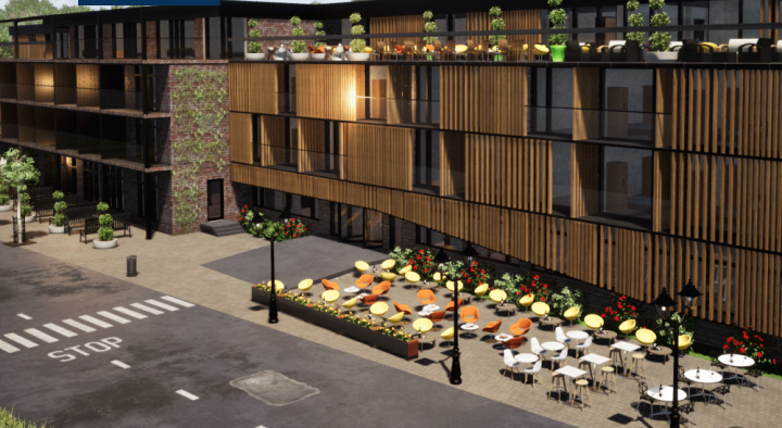 კომპლექსში შედის რესტორნები და კაფე ტერასით, ღია და დახურული ავტოსადგომები, საკონფერენციო დარბაზი, სარეკრეაციო ზონა, ადმინისტრაცია და დაცვის 24-საათიანი მომსახურება.
