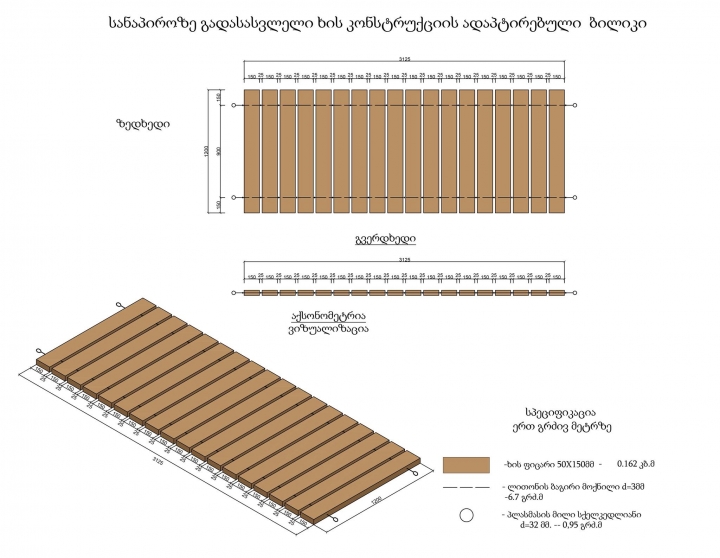 ხის კონსტრუქციის ტრასნფორმირებადი ბილიკები რვა სხვადასხვა ლოკაციაზე დამონტაჟდება.