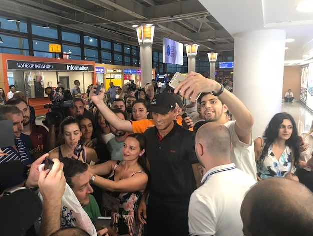 რივალდოს თბილისის საერთაშორისო აეროპორტში adjarabet.com-ის წარმომადგენლებთან ერთად ქართველი გულშემატკივარიც დახვდა.