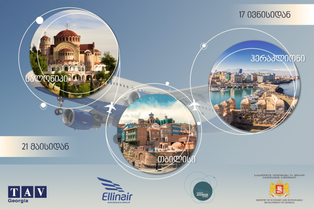 ეკონომიკისა და მდგრადი განვითარების სამინისტროს შპს ,,საქართველოს აეროპორტების გაერთიანებასა“ და ბერძნულ ავიაკომპანია ELLINAIR-ს შორის მოლაპარაკებების დასრულების შედეგად, მაისიდან განახლდა სეზონური რეისების შესრულება თბილისის საერთაშორისო აეროპორტიდან სალონიკისა და კუნძული კრეტას მიმართულებით.