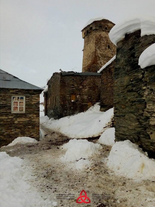 ტრადიციული სვანური საცხოვრისის სახურავს ახლომდებარე საგვარეულო კოშკის სახურავზე ყინულად ქცეული თოვლის მომწყდარი მასა დაეცა, რომელიც გადმოთოვის აუცილებელი პროცედურის განუხორციელებლობის გამო წარმოიქმნა. შემთხვევის შედეგად არავინ დაშავებულა.