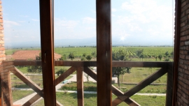ღვინის ქარხნიდან ერთ მხარეს იშლება ალაზნის ველის ხედი, ხოლო მეორე მხარეს კავკასიონის ქედი.