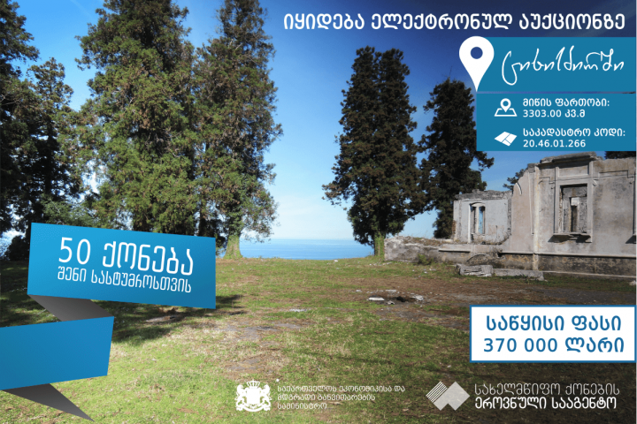 ფართის საწყისი ფასი 370 000 ლარია. სასტუმრო პროექტის „50 ქონება შენი სასტუმროსთვის“ ფარგლებში აშენდება.