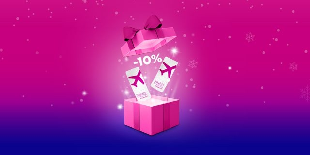 აღნიშნული სარეკლამო აქცია მოქმედებს 2023 წლის 13 დეკემბრის 00:00-დან 23:59-მდე, CET („სააქციო პერიოდი”). 10%-იანი ფასდაკლება ვრცელდება ტარიფზე, ადმინისტრაციული მოსაკრებლის გამოკლებით. 10%-იანი ფასდაკლება ვრცელდება wizzair.com-ზე და WIZZ-ის მობილურ აპში ხელმისაწვდომ შერჩეულ ავიაბილეთებზე და ძალაშია სააქციო პერიოდში. მგზავრობის პერიოდი შეზღუდულია. მგზავრობა უნდა შესრულდეს 2024 წლის 31 იანვრამდე. სარეკლამო აქცია ვრცელდება მხოლოდ wizzair.com-ზე და WIZZ-ის მობილურ აპში გაფორმებულ ჯავშნებზე. სარეკლამო აქცია არ ვრცელდება ჯგუფურ ჯავშნებზე.