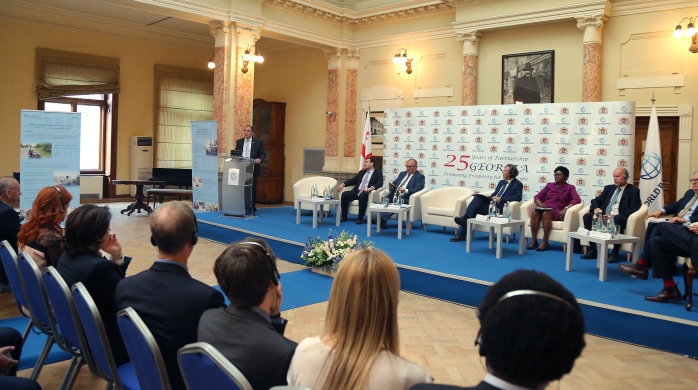 ფორუმის მონაწილეების წინაშე გამოვიდნენ მსოფლიო ბანკის რეგიონალური დირექტორი მერსი ტემბონი, ვიცე-პრემიერი, განათლებისა და მეცნიერების მინისტრი ალექსანდრე ჯეჯელავა, იუსტიციის მინისტრი თეა წულუკიანი, რეგიონული განვითარებისა და ინფრასტრუქტურის მინისტრის მოადგილე ირაკლი მატკავა.