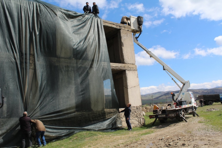 მერიის ზედამხედველობის სამსახურის მიერ შერჩეული უსახური შენობების სამშენებლო ფარდით დაფარვას კეთილმოწყობის სააგენტო უზრუნველყოფს. სამუშაოები დაახლოებით ერთი კვირის წინ უფლისციხის გზის პირას მდებარე ყოფილი ნავთობბაზის ნახევრადაშენებულ შენობაზე დაიწყო. პარალელურად მიმდინარეობს ახლომდებარე ტერიტორიის დასუფთავებაც.