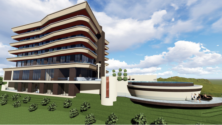 ეს იქნება განსხვავებული ყველა სასტუმროსგან, გარკვეული სიძველის ნიშნებით, მაგრამ ამასთანავე თანამედროვე სასტუმრო. აქ იქნება ღია საცურაო აუზი, რომელიც მთის ქიმზე გადმოდის. აქვე , ხედად ალაზნის ველი იშლება. ქვედა სართული დათმობილი აქვს ტრენაჟორისთვის, მასაჟისთვის და საუნითვის განკუთვნილ ოთახებს.