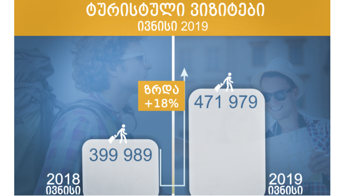 რაც შეეხება 2019 წლის ივნისის თვეს, საქართველოში ტურისტული ვიზიტების რაოდენობამ 471,979 შეადგინა, რაც 71,990-ით მეტია 2018 წლის მაჩვენებელზე- ზრდა +18%.