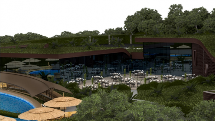 დოკუმენტში ვკითხულობთ, რომ მიწის დონის ქვედა სართულზე ღია და დახურული რესტორანი, რესტორნის მომსახურე სამზარეულო, ღია საცურაო აუზის მომსახურე გარდერობები, სასაწყობე და დამხმარე/ტექნიკური ფართები მოეწყობა. ხოლო მიწის დონის ზედა I სართულზე შენობაში შესასვლელი სივრცე. საპროექტო შენობა ადაპტირებულია შშმ პირთათვის.